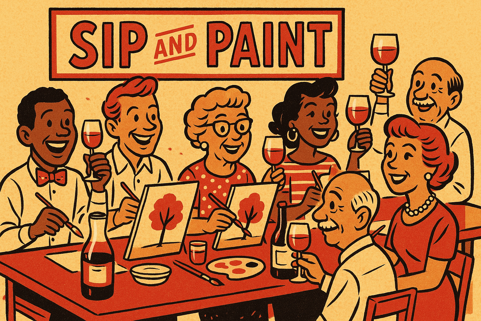 Sip + Paint is a fun, social evening designed to spark your creativity. Enjoy a glass of wine as you’re guided step-by-step through creating your own painting in a relaxed, inspiring atmosphere. Each session features a new theme to spark fresh ideas and keep things exciting; no two evenings are ever the same. Whether you’re a beginner or a seasoned painter, this class is all about expression, laughter, and letting go of perfection. Come with friends or meet new ones as you paint, sip, and unwind. All materials and one drink are included. Just bring your imagination.
